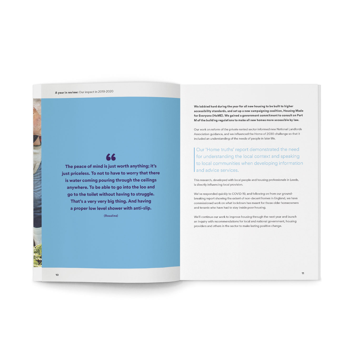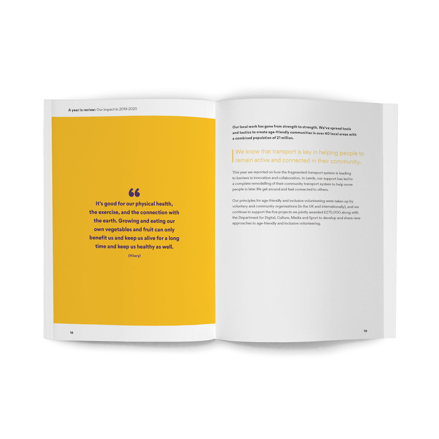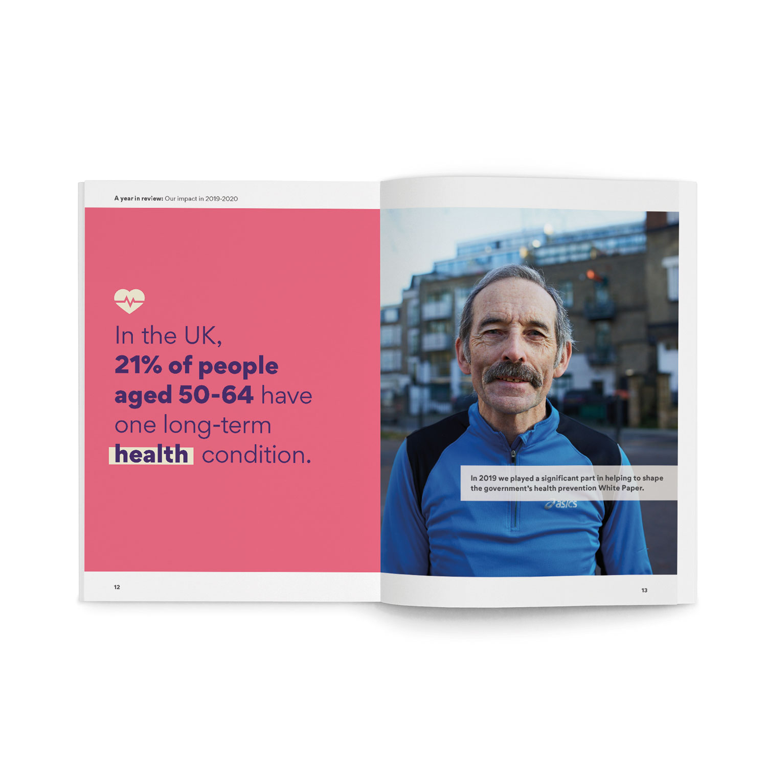 Fivefold was commissioned to design their 2019-20 Impact Report. The brief was to follow their new brand guidelines but also to produce something new, fresh and impactful. Key stats needed to stand out and to be seen throughout the report, as well as quotes and achievements from throughout the year.